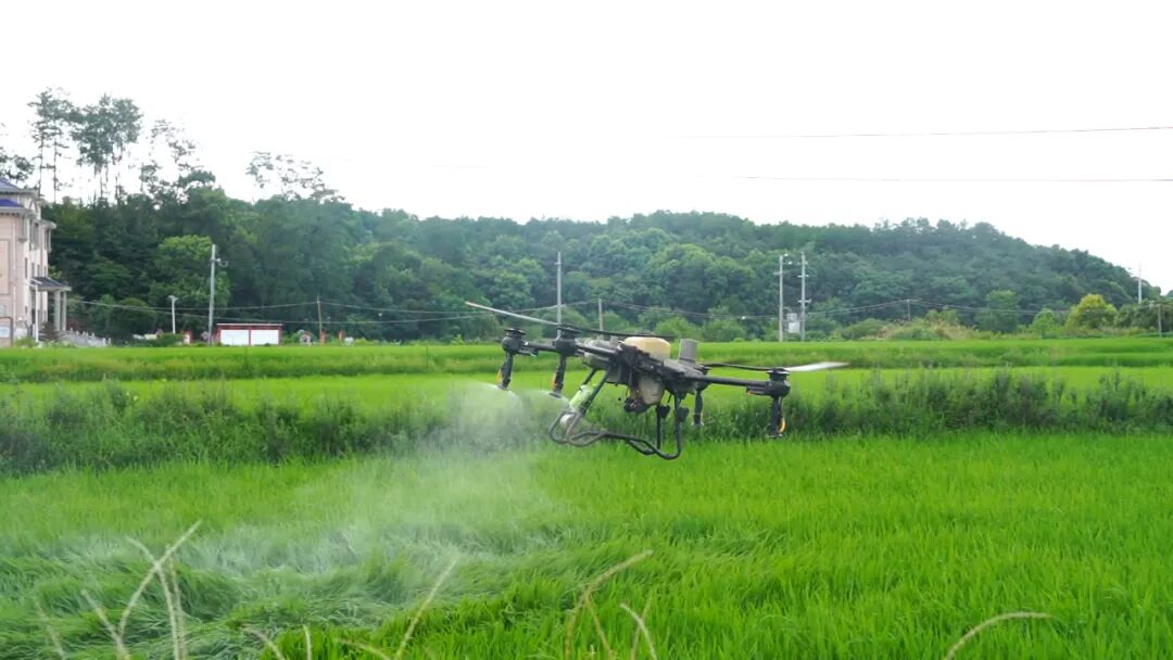 盛夏时节,泽泉乡连片的竹稻米田碧波荡漾。今年,种植户用上了“植物疫苗”新型制剂,搭配高效无人机作业,为稻米稳产提质注入科技力量。