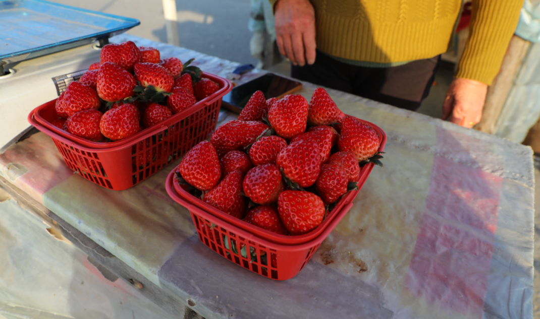 “销路不用愁,我们这里附近有收购草莓的地方,价格也理想。”胡必友笑着说。目前,大棚里的草莓已进入采收期,大果收购价约26元/斤,小果约20元/斤。一颗颗精心采摘的草莓鲜亮饱满,正被整齐码放,走向市场。