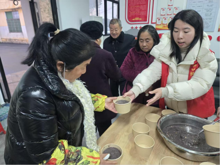 一碗碗热粥不仅暖胃,更拉近了邻里间的距离,让传统节日的温情在社区里流淌。