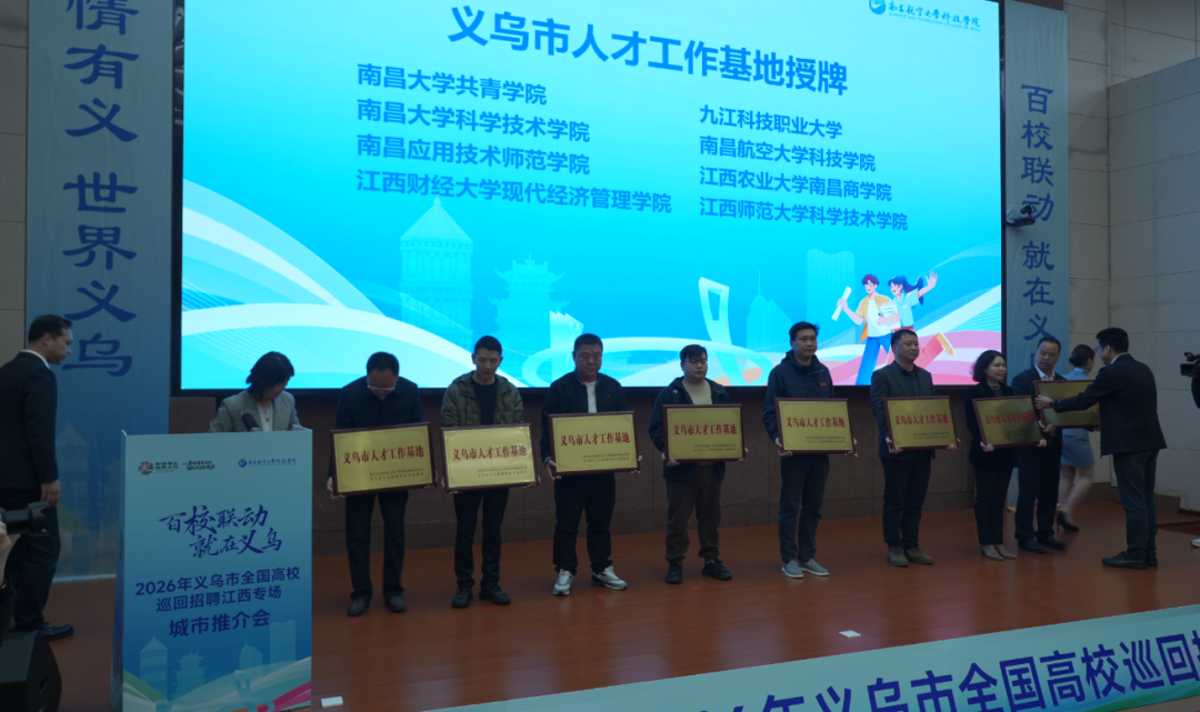 本次活动由江西省教育厅与浙江省义乌市联合主办。现场,义乌市围绕城市概况、人才政策及企业岗位招聘等内容作了专题宣讲。随后,义乌市对共青城驻市8所高校进行了人才工作基地授牌。