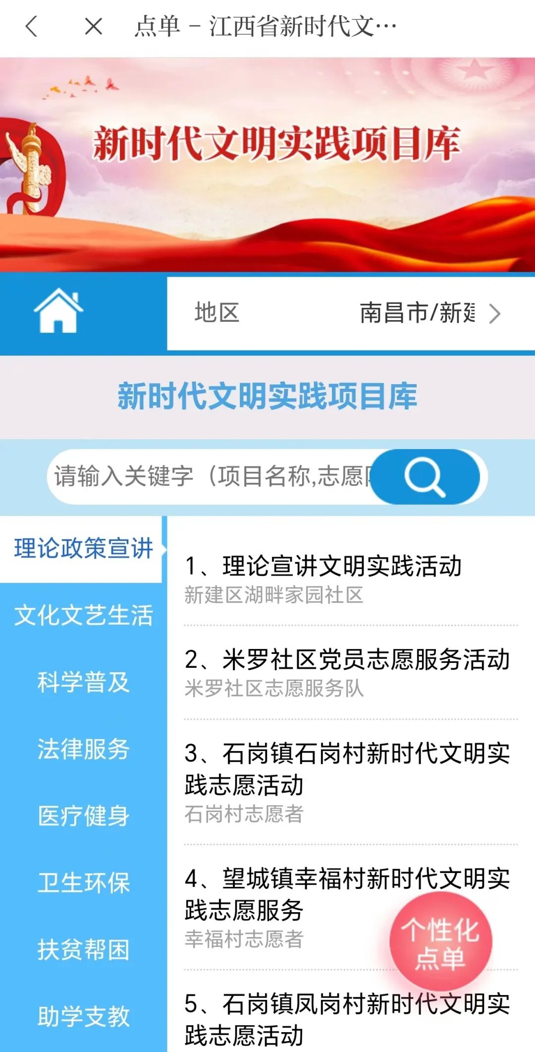 “江西省新时代文明实践志愿服务点单平台”