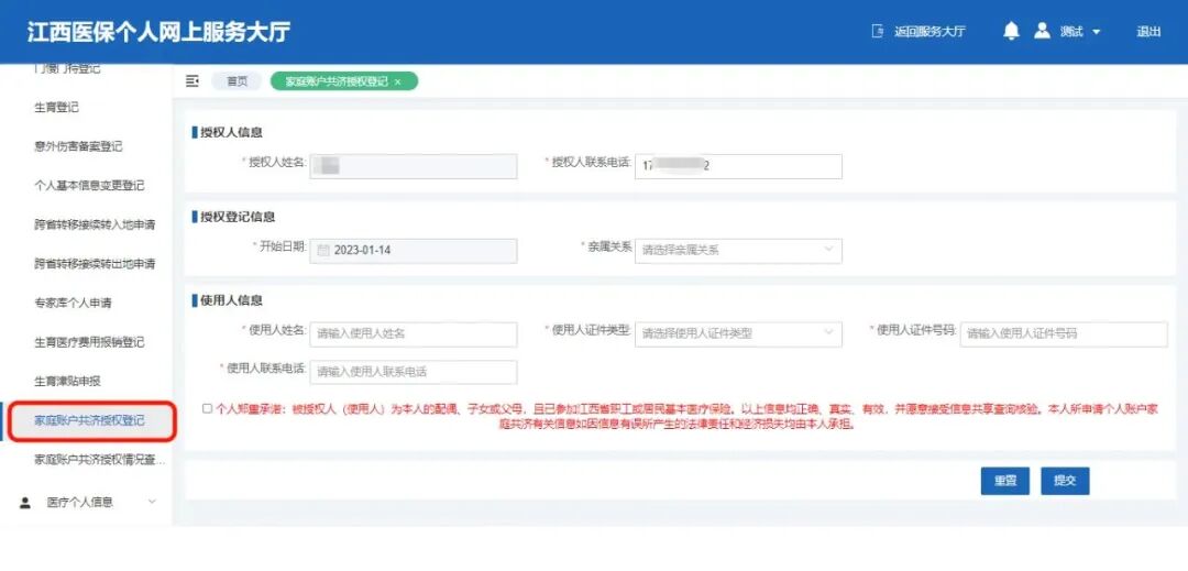 第3步:家庭账户共济授权登记