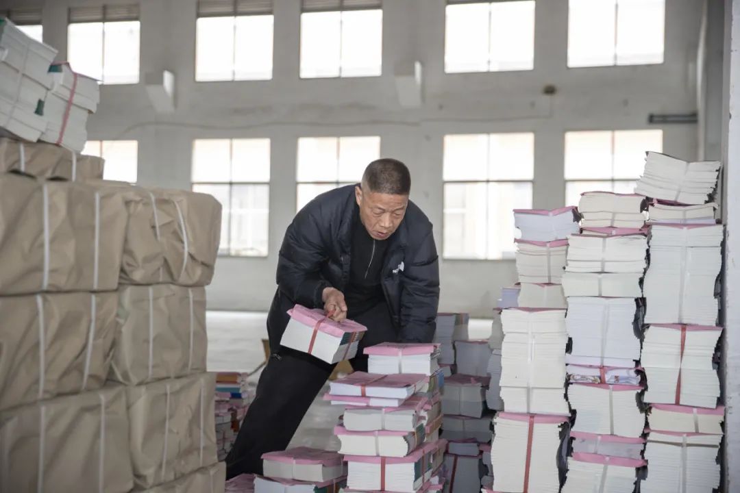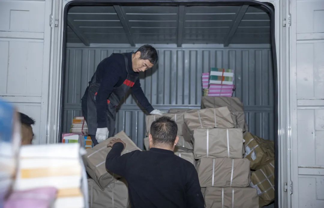 配送人员将一捆捆教材装上车