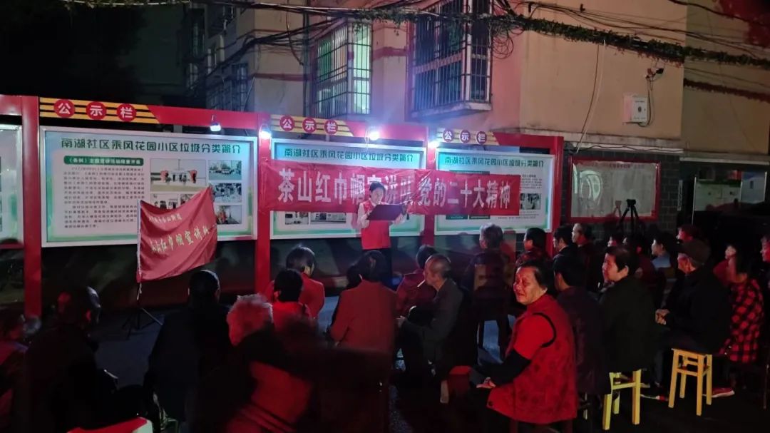 新时代开启新征程,新使命召唤新担当,为推动党的二十大精神“声”入万户、“声”入人心,市人大代表黄蓉同志作为茶山红巾帼宣讲队积极活跃在宣讲的第一线,持续深入居民小区,为老百姓们讲解党的二十大精神。