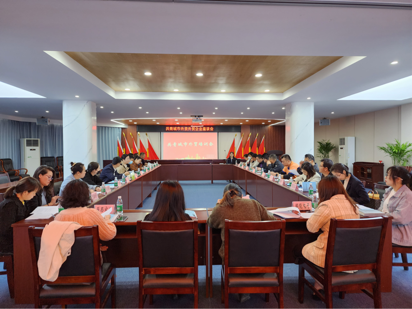 为分析研判当前外资外贸形势,解决企业困难诉求,推动外资外贸工作稳中提质,4月27日上午,共青城市贸促会举办外资外贸企业座谈会暨业务培训会。共青城市副市长郑斌出席并讲话,市贸促会会长卢燕、市行政审批局副局长胡霞,全市25家重点外资外贸企业负责人参加会议。