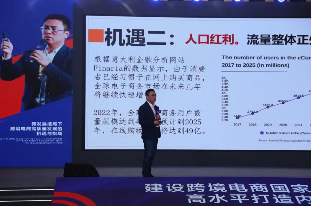 刘文华在致辞时代表九江市委、市政府向与会专家学者、企业家的到来表示诚挚欢迎和衷心感谢,并全面介绍了九江市情。他说,近年来,九江市深入贯彻落实习近平总书记关于跨境电商要朝着“买全球卖全球”目标迈进的重要要求,解放思想、守正创新,为推动跨境电商高质量发展作出了很多有益探索,跨境电商综试区发展势头良好,为全市外贸高质量发展提供了有力支撑。