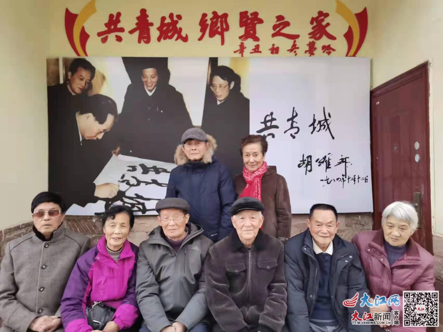 在共青城乡贤之家,8位“老垦”深情留影。新老乡贤在青年之家雕像前合影,立志“革命人永远年青”。