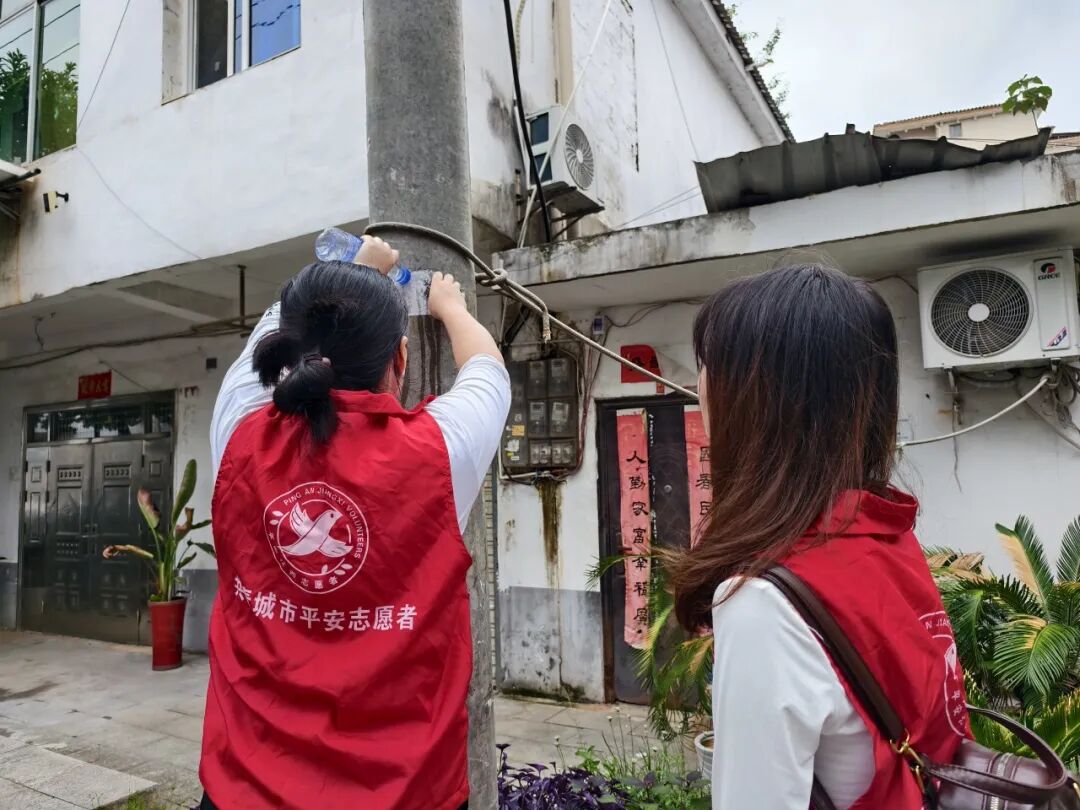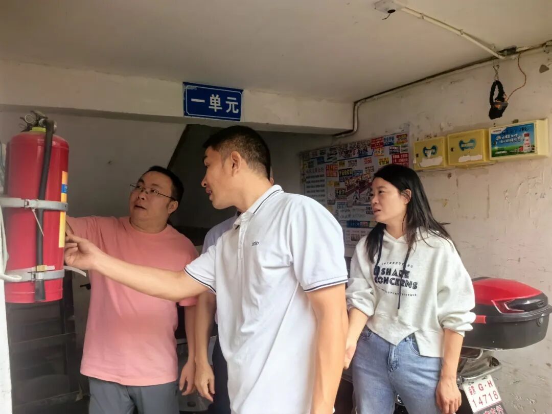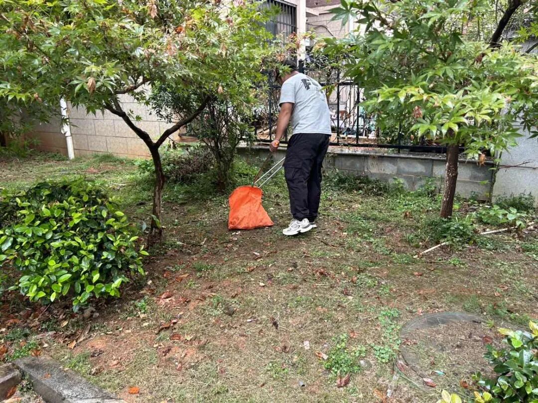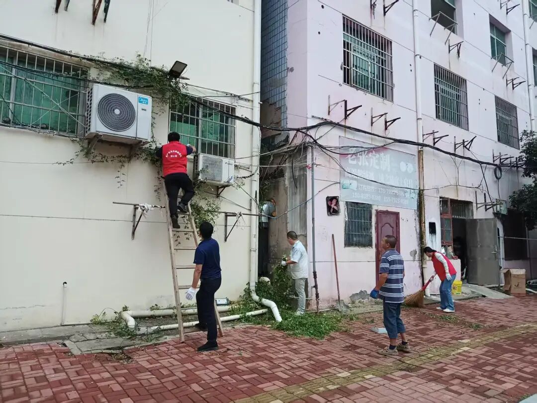 共青城市第一中学作为光明社区责任单位,积极组织力量,清除公共区域杂草,清理电梯内“牛皮癣”,耐心引导居民规范停放电动车。