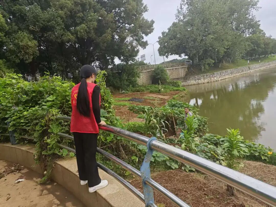 茶山街道中航社区聚焦沿湖区域开展日常巡查,针对居民私自开垦种菜破坏景观、污染环境的问题,耐心沟通,从源头遏制不文明行为。