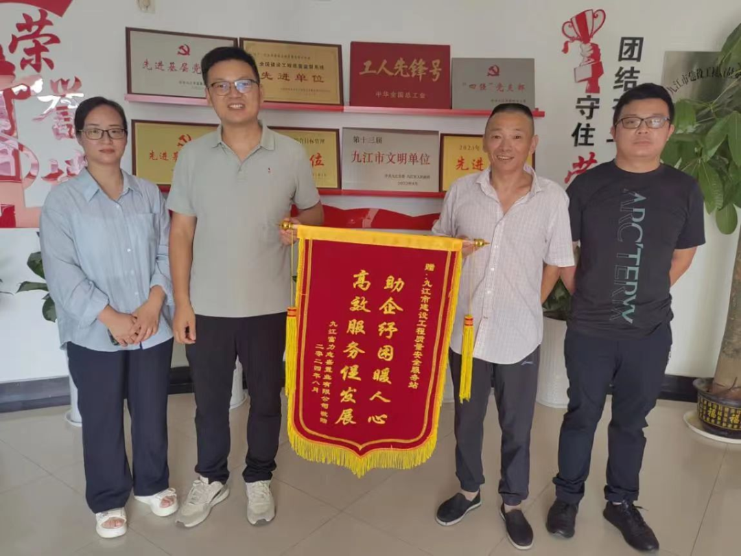 “真是太感谢你们了,困扰我们验收交付的问题终于得到了解决。”近日,九江市一保交楼项目负责人亲自来到该市住建局质安站,送上“助企纾困暖人心,高效服务促发展”的锦旗,对他们的监督服务工作表示衷心感谢。