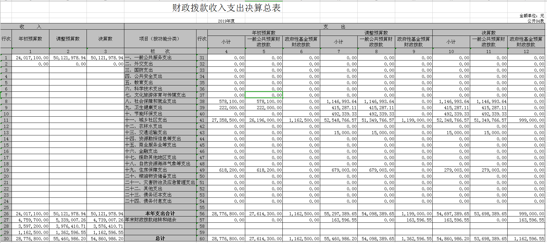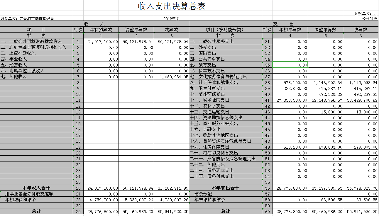 第二部分 2019年度部门决算表