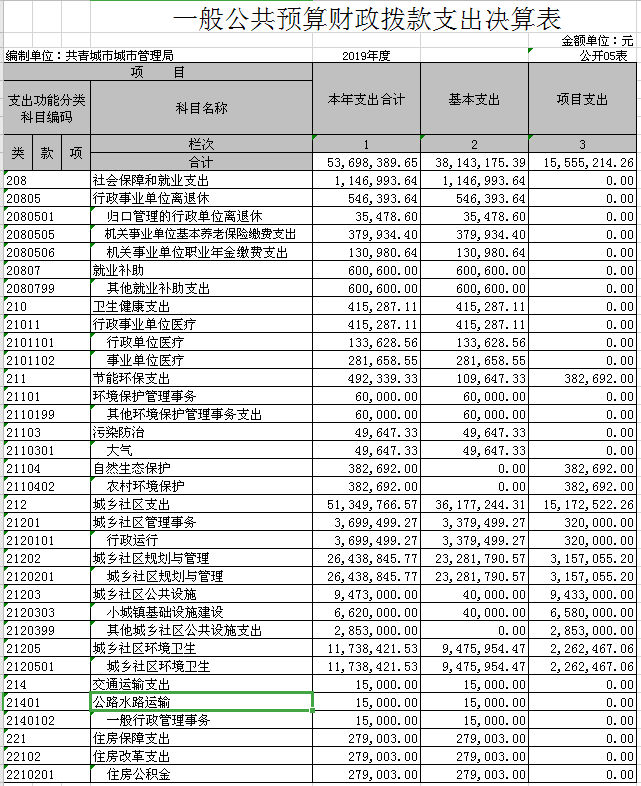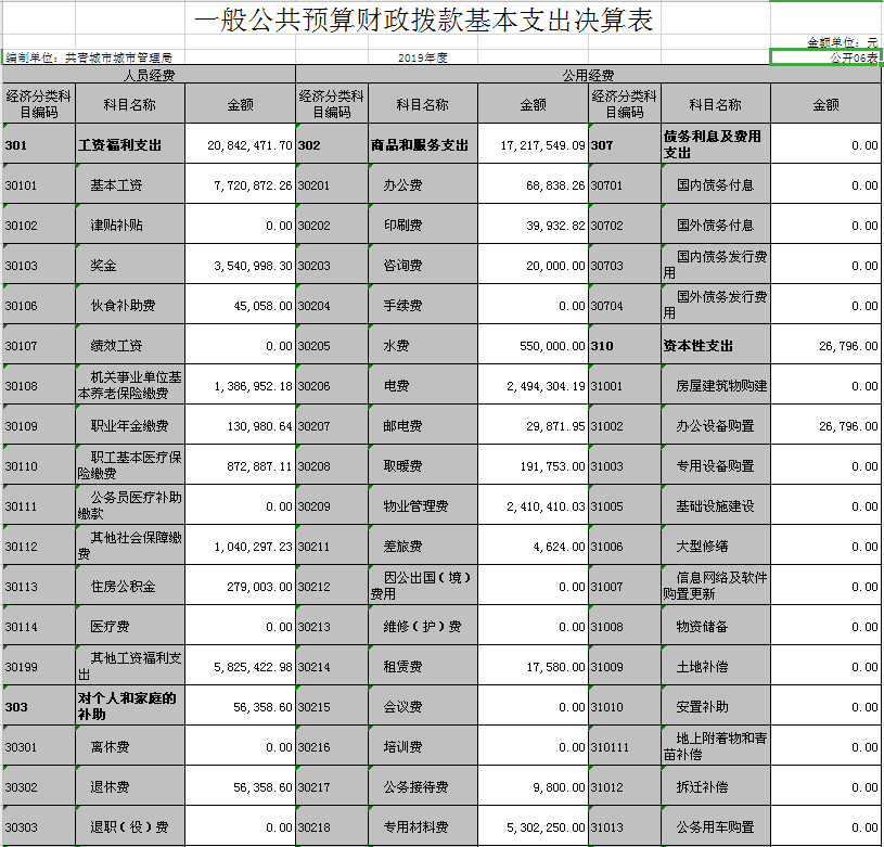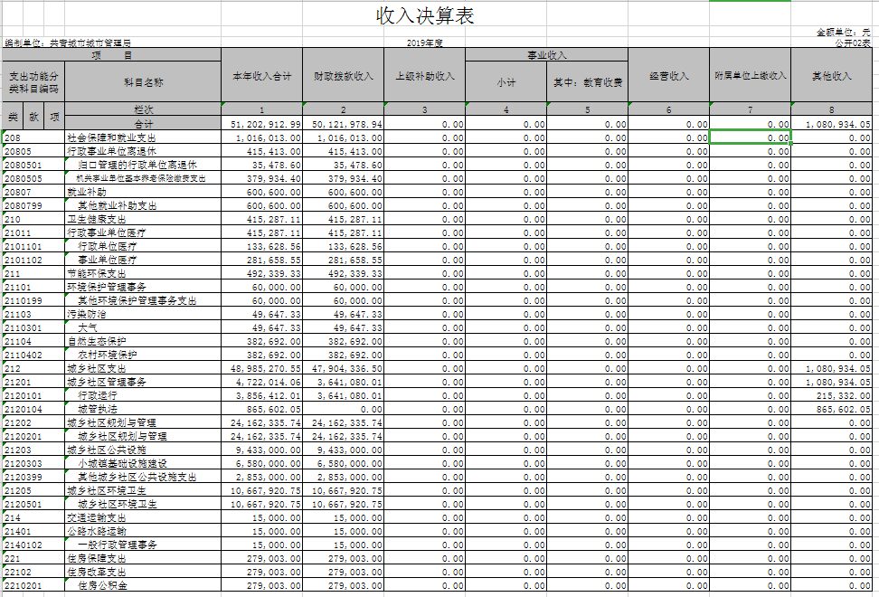 城市管理局部门2019年度部门决算