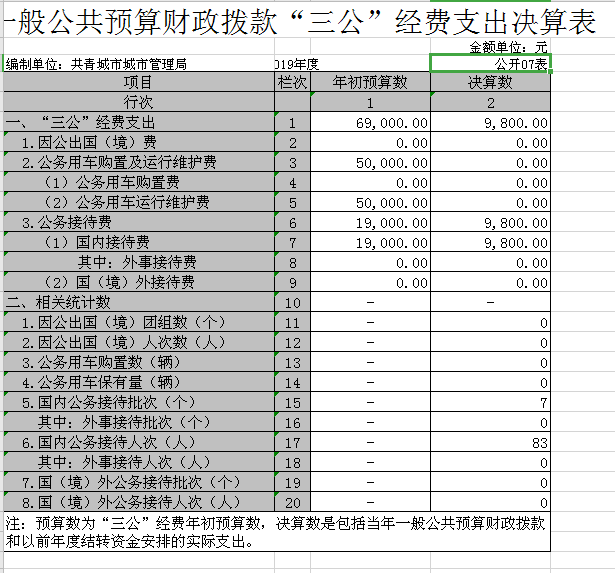 (一)“三公”经费:反映财政拨款安排的因公出国(境)费、公务用车购置及运行费和公务接待费。其中,因公出国(境)费反映单位公务出国(境)的国际旅费、国外城市间交通费、住宿费、伙食费、培训费、公杂费等支出;公务用车购置及运行费反映单位公务用车车辆购置支出(含车辆购置税)及租用费、燃料费、维修费、过路过桥费、保险费、安全奖励费用等支出;公务接待费反映单位按规定开支的各类公务接待(含外宾接待)支出。