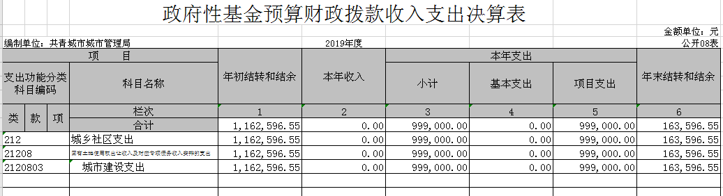 八、政府性基金预算财政拨款收入支出决算表