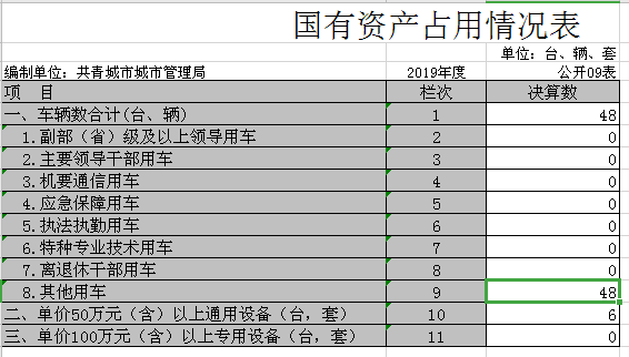 截止2019年12月31日,本部门国有资产占用情况为其他用车48辆。其中车辆中的其他用车主要是环卫保洁清扫作业车、市政路灯维修工程车等车辆。