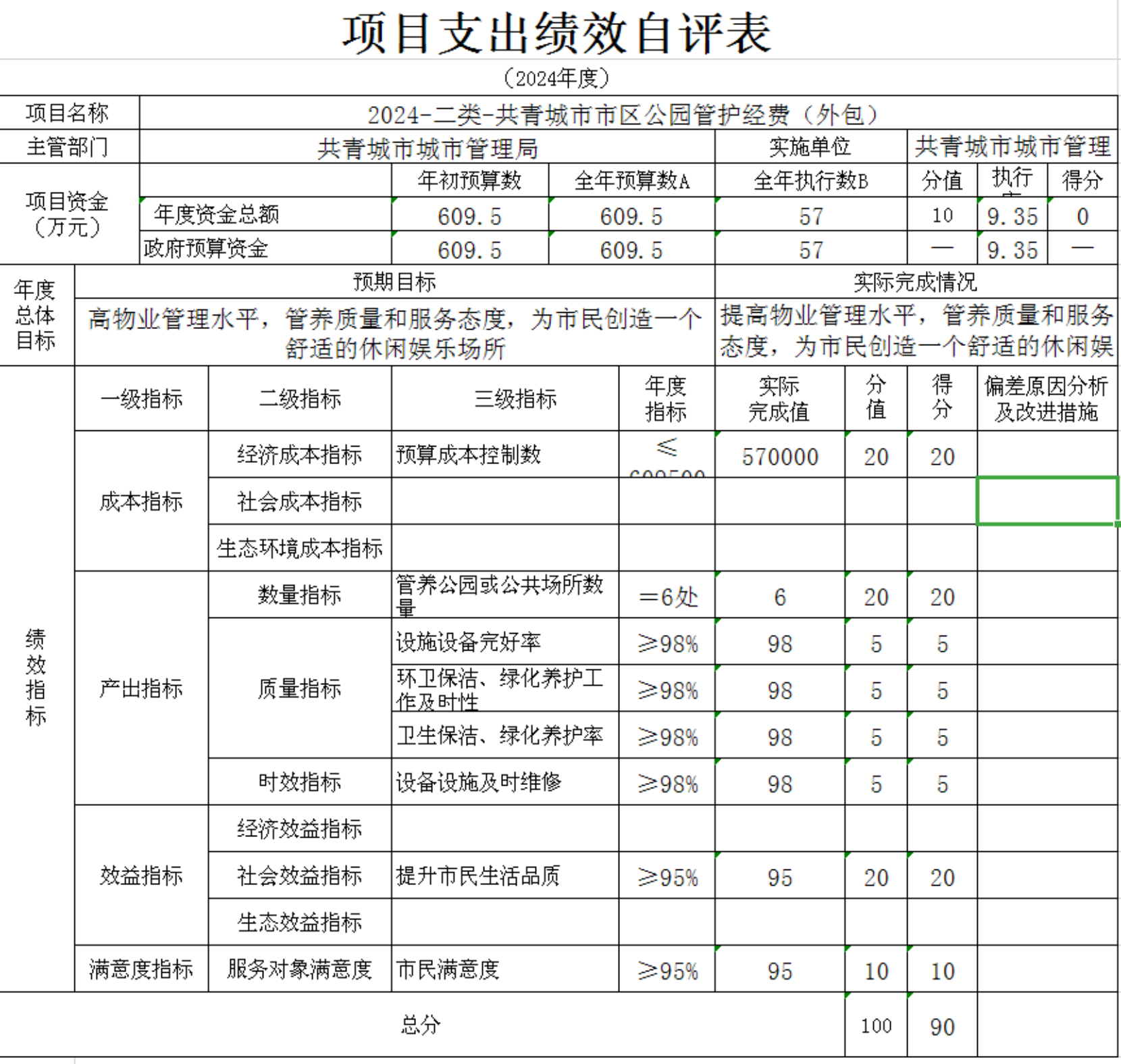 共青城市城市管理局(本级)“二类-代列-共青城市市区公园管护物业管理费”“二类-代列-环卫市场化” 等2项目支出绩效自评结果如下:
