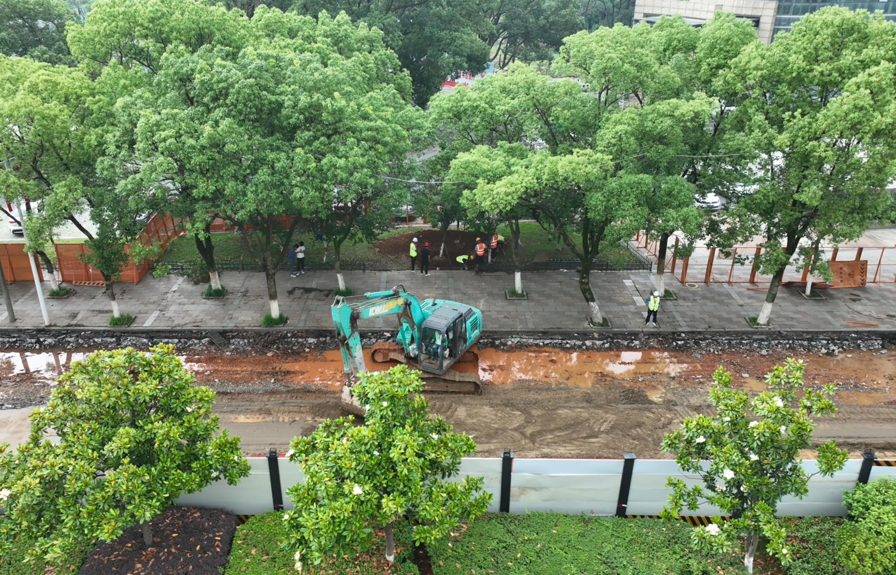 近日,在共青城市水环境综合治理城区排水管网改造工程共青大道至西湖引水段施工现场,施工人员正驾驶挖掘机紧张有序地开展作业,该路段预计今年6月中旬完工,路面恢复预计在8月份。截至目前,整个工程已完成27.3公里的管道安装(占比44%)和23个小区地块的排水改造工作。项目完工后将有效畅通城市排水管网,让百姓生活幸福感“原地升级”。(潘成 九江日报全媒记者 刘家 摄)