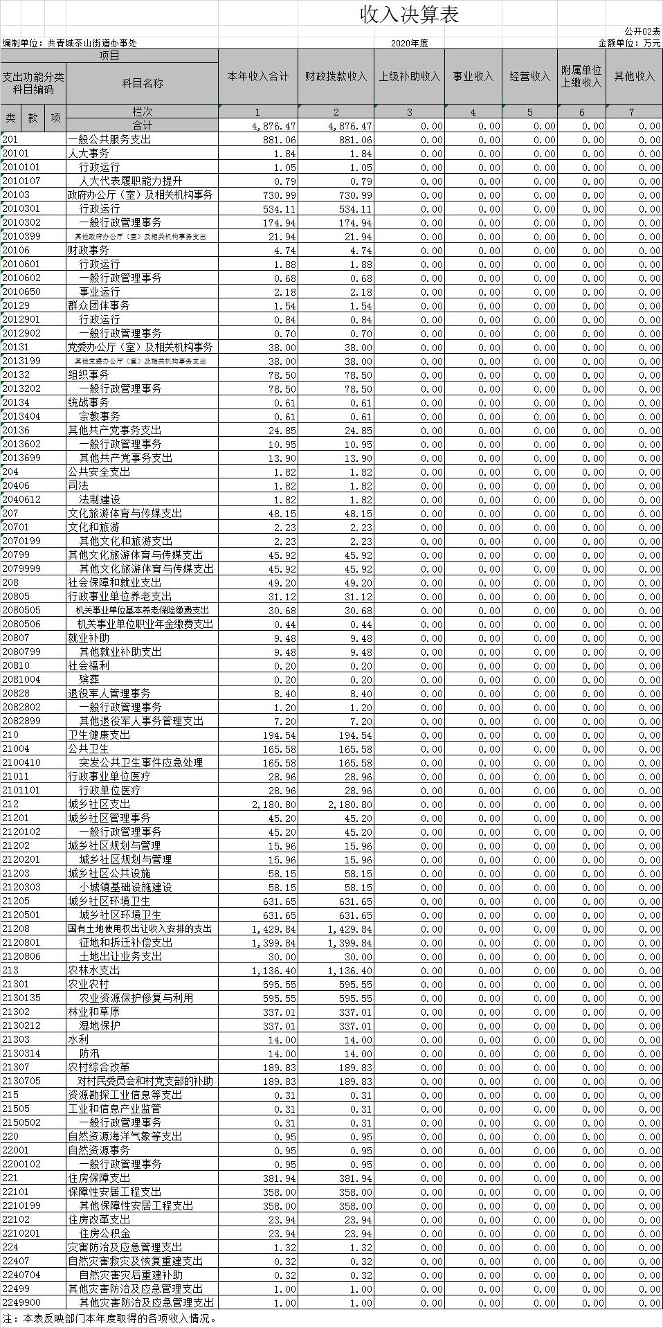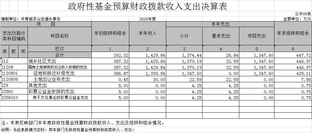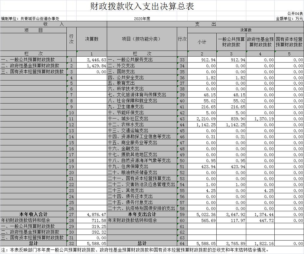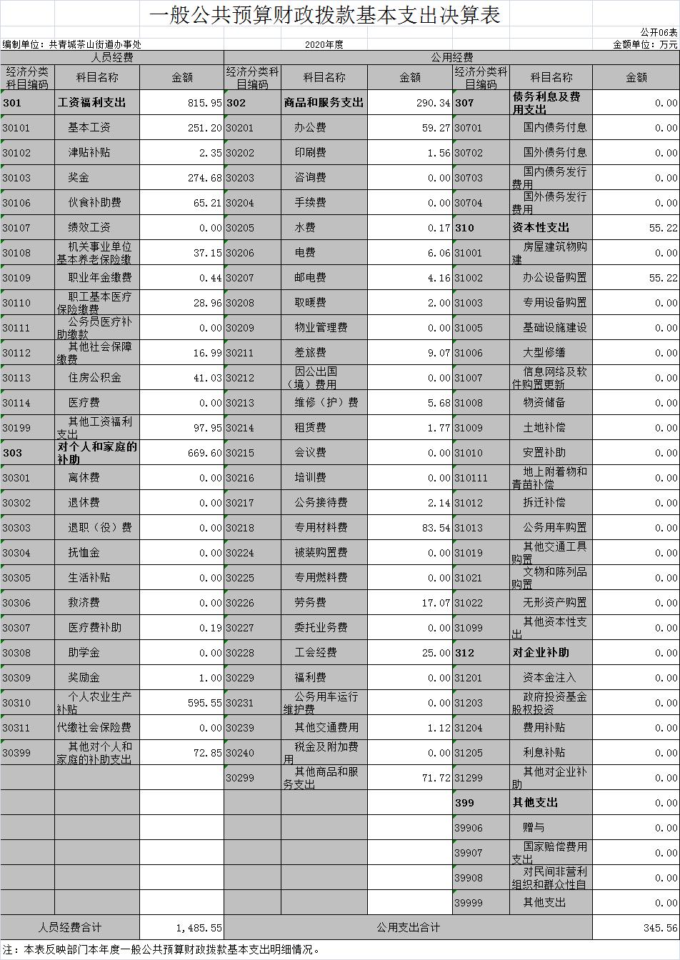 茶山街道办事处2020年度部门决算
