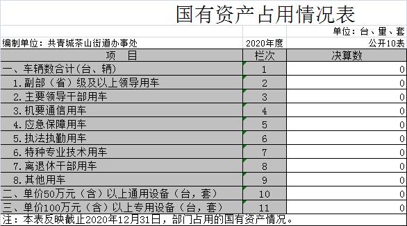 截至2020年12月31日,本部门(单位)国有资产占用情况见公开10表《国有资产占用情况表》。其中车辆中的其他用车主要是:无公车。
