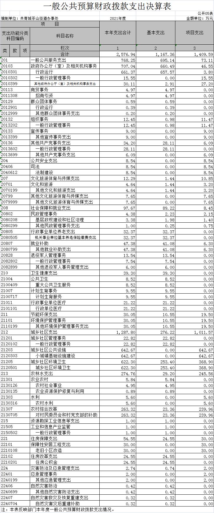 茶山街道办事处根据《关于开展 2021年度预算项目、部门整体支出及转移支付预算执行情况绩效自评工作的通知》(共财发﹝2022﹞17号)相关要求,积极开展2021年度项目支出绩效自评工作,现将自评情况汇报如下。