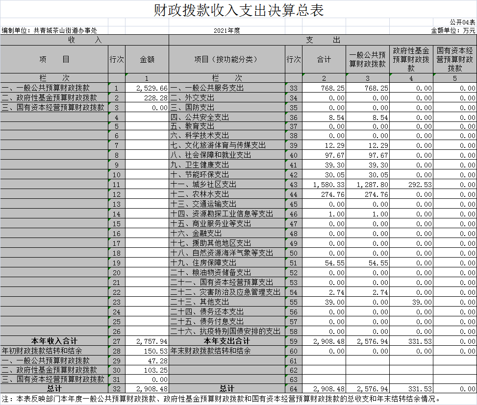 2021年茶山街道保障了基层组织运转保障经费、社区卫生保洁人员工资及工作经费及社区组织运转保障经费申请拨付到位,保障了街道及社区的正常工作运转。