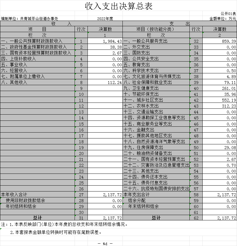 一、收入支出决算总表