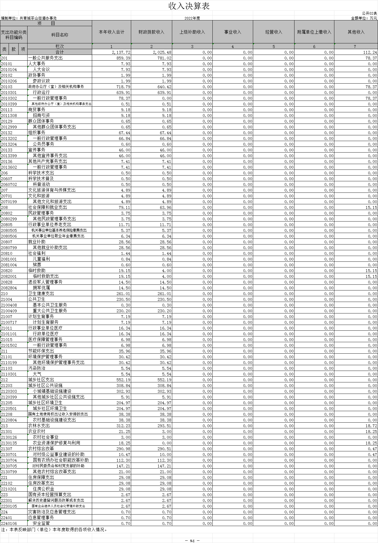 二、收入决算表