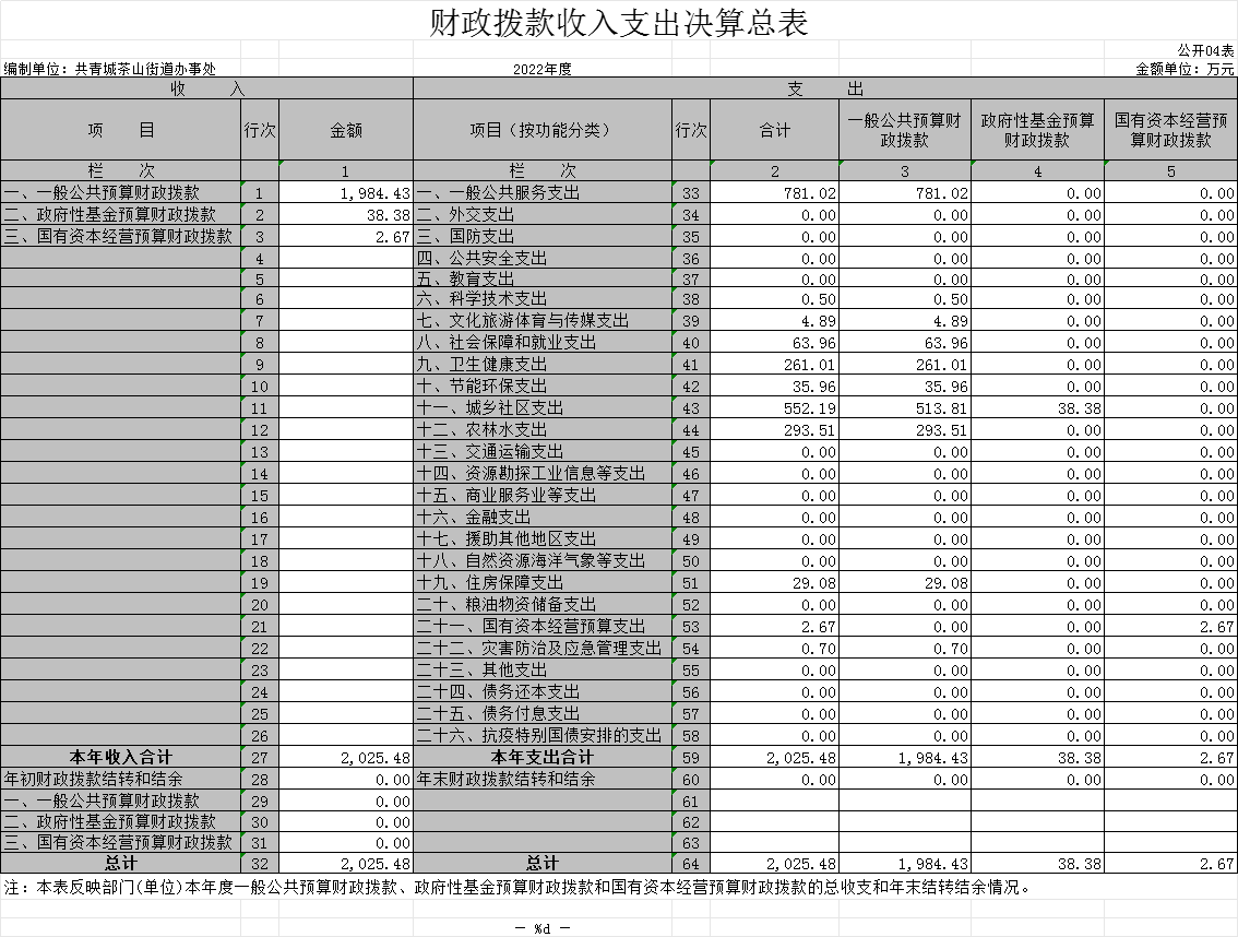 四、财政拨款收入支出决算总表