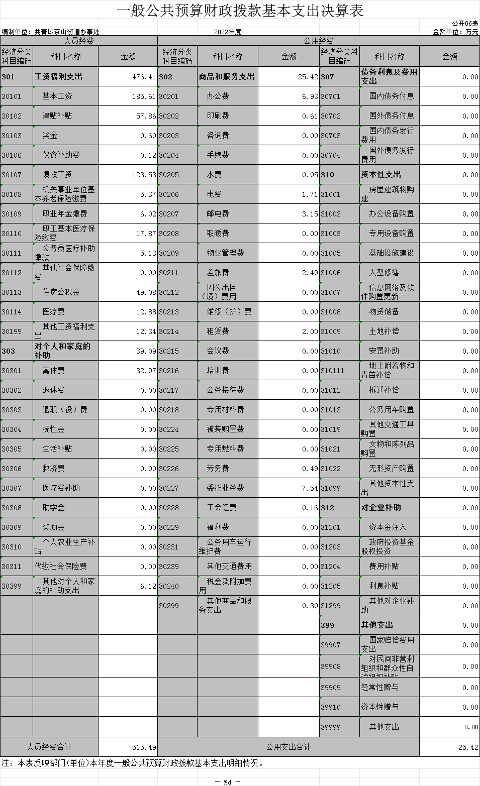 本部门2022年度一般公共预算财政拨款基本支出540.92万元,其中: