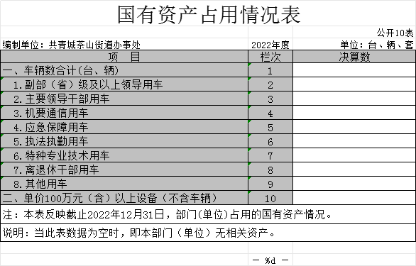 十、国有资产占用情况表