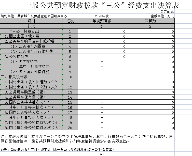 本部门2020年度一般公共预算财政拨款“三公”经费支出年初预算数为0万元,决算数为0万元,完成年初预算的0%,决算数较2019年增加0万元,增长0%,其中: