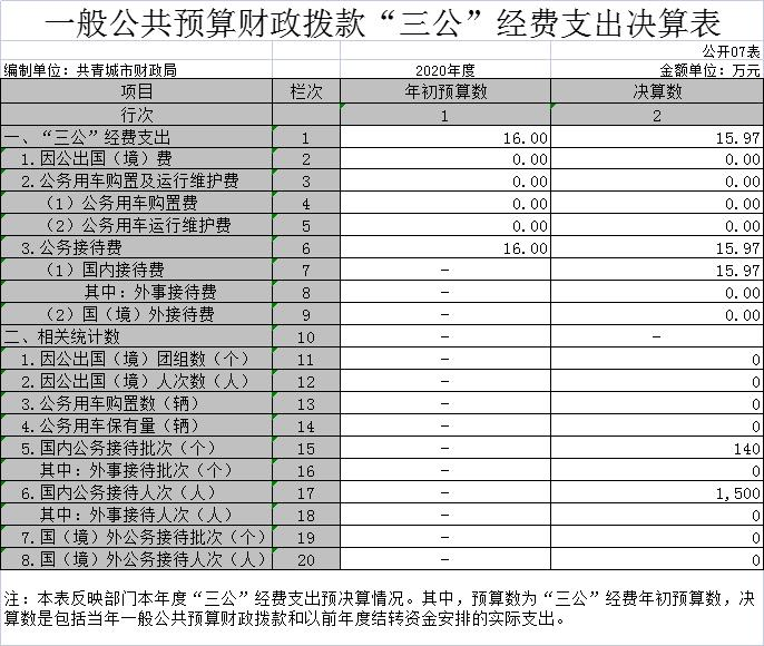 (一)“三公”经费:反映财政拨款安排的因公出国(境)费、公务用车购置及运行费和公务接待费。其中,因公出国(境)费反映单位公务出国(境)的国际旅费、国外城市间交通费、住宿费、伙食费、培训费、公杂费等支出;公务用车购置及运行费反映单位公务用车车辆购置支出(含车辆购置税)及租用费、燃料费、维修费、过路过桥费、保险费、安全奖励费用等支出;公务接待费反映单位按规定开支的各类公务接待(含外宾接待)支出。