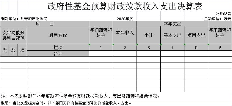 八、政府性基金预算财政拨款收入支出决算表