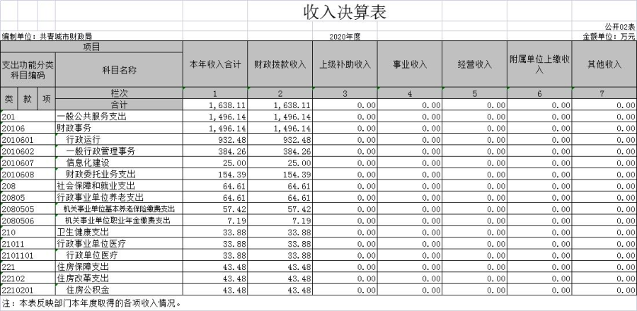 第二部分 2020年度部门决算表