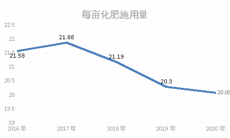 减排和降耗成效显著。按照省市要求,积极确定总量减排计划,建立污染物总量减排项目台账,积极开展节能降耗行动,督促企业节约用水用能,降低污染物排放,取得初步成效。2020年,化学需氧量减排量为433.8吨、氨氮总量下降78.9吨,完成上级下达减排任务,二氧化硫排放量下降18.2吨,氮氧化物减排量为9.68吨,远远优于市里下达的标准;全市万元GDP用水量较2015年下降35.24%,单位地区生产总值能耗较2015年累计下降3.96%。通过实施化肥减量化和现代农业产业化发展,2016年~2020年,共青城通过实施化肥减量化和现代农业产业化发展,化肥施用量总共减少16.1万公斤,每亩耕地施用量减少1.5公斤,每亩化肥施用量变化情况如图2。