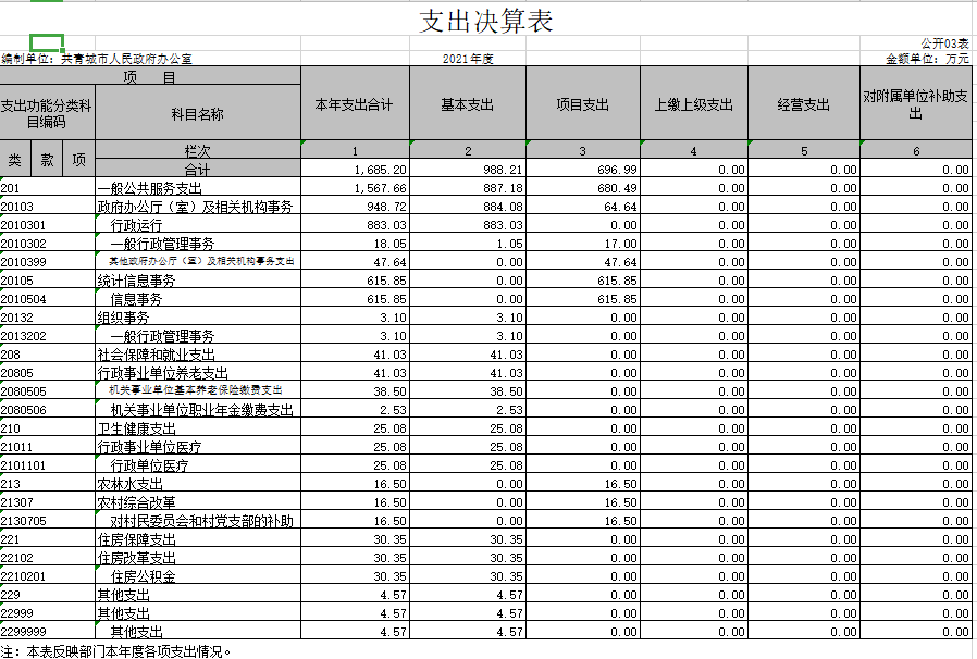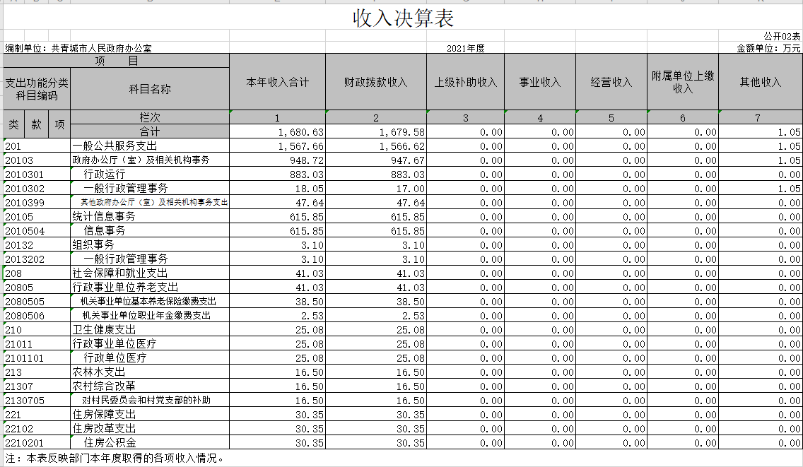 纳入本套部门决算汇编范围的单位共1个,包括:共青城市人民政府办公室。