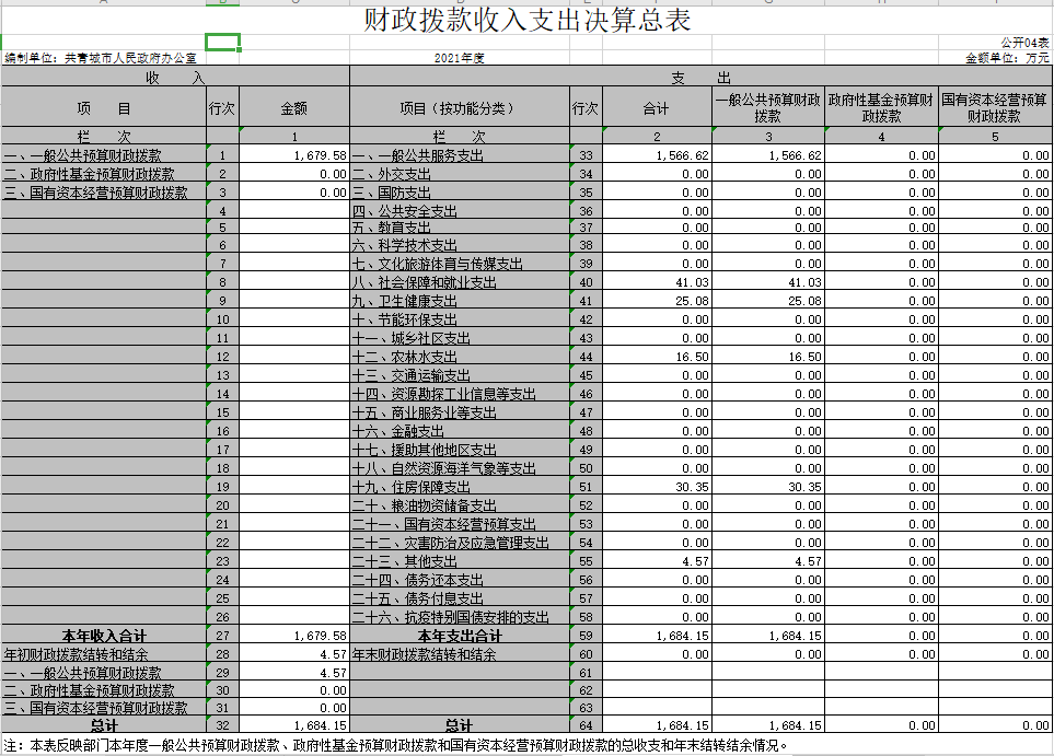 四、财政拨款收入支出决算总表