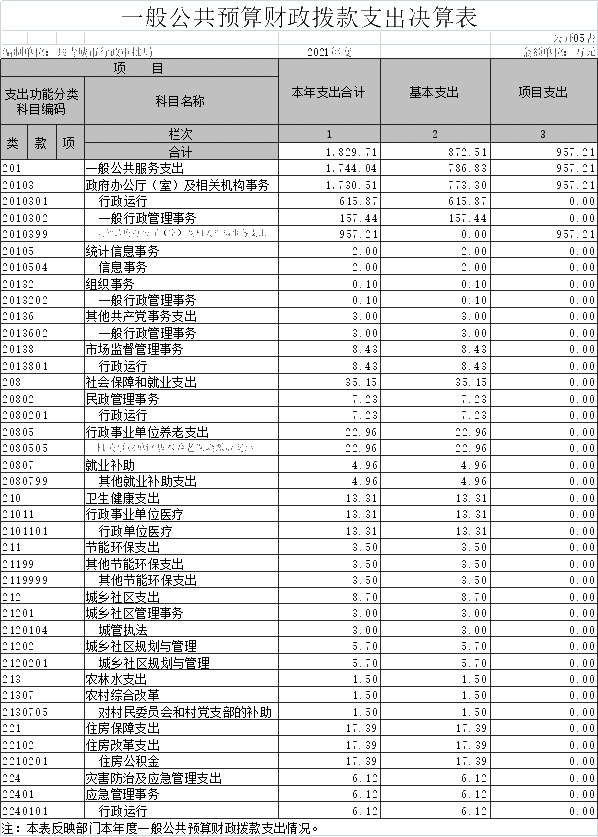 第二部分 2021年度部门决算表