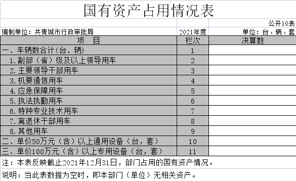 截至2021年12月31日,本部门(单位)国有资产占用情况见公开10表《国有资产占用情况表》。其中车辆中的其他用车主要是我单位没有公务用车。