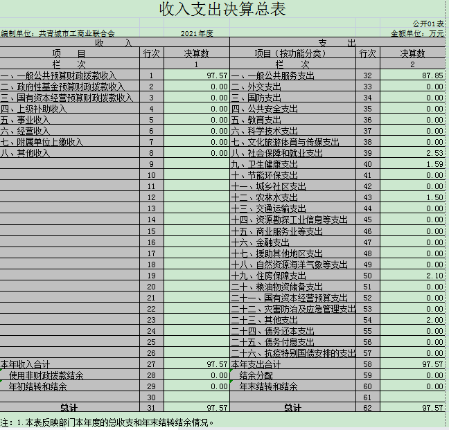 本部门2021年度支出总计 97.57万元,其中本年支出合计 97.57万元,较2020年增加 23.11万元,增长 31.04 %,主要原因是:人员增加;年末结转和结余 0万元,较2020年增加(减少) 0万元,增长(下降)0 %,主要原因是:年末无结余。