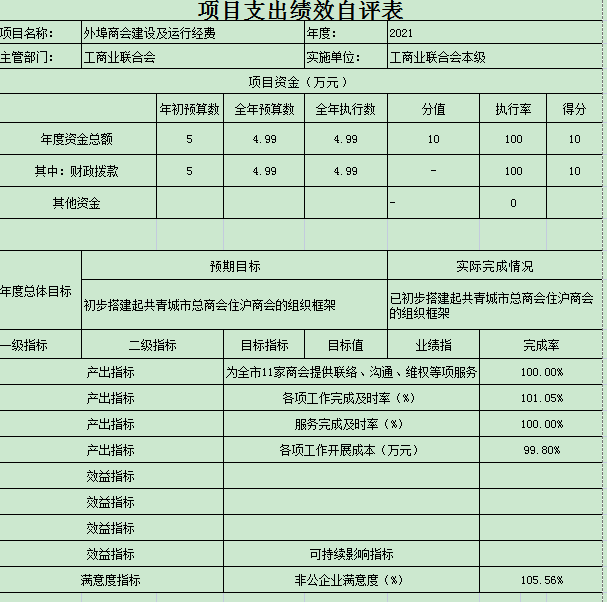 见《共青城市工商业联合会部门整体支出绩效自评报告》。