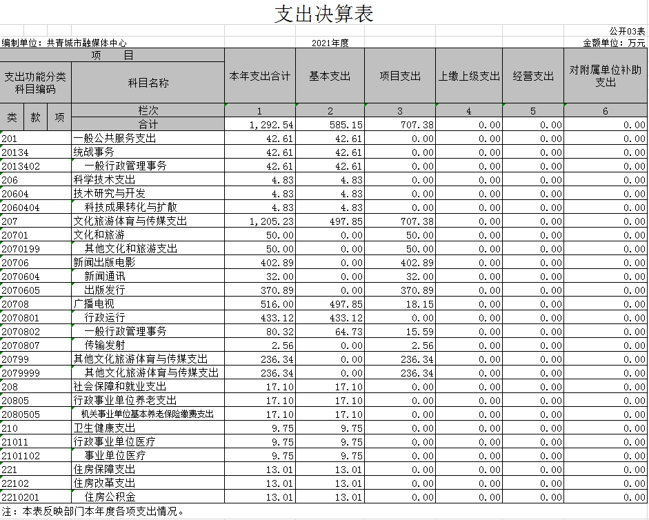 按功能分类支出:广播电视支出849.34万元,社会保障支出18.18万元,卫生健康支出11.54万元,住房保障支出13.67万元。