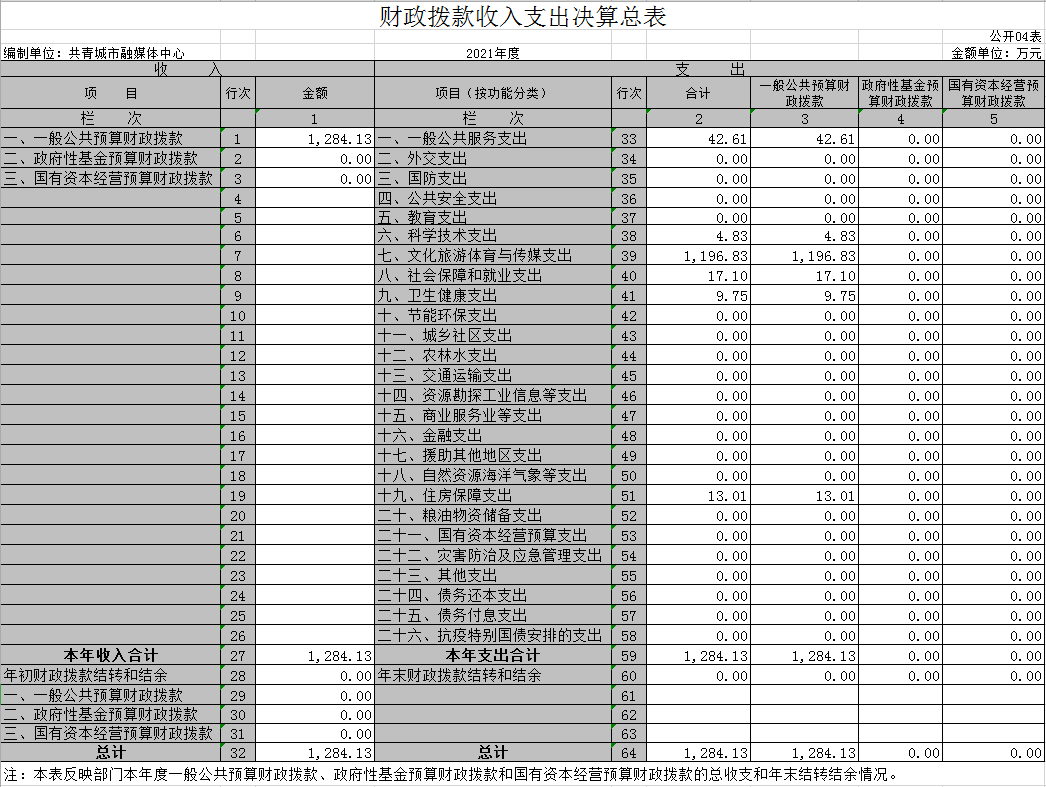 四、财政拨款收入支出决算总表