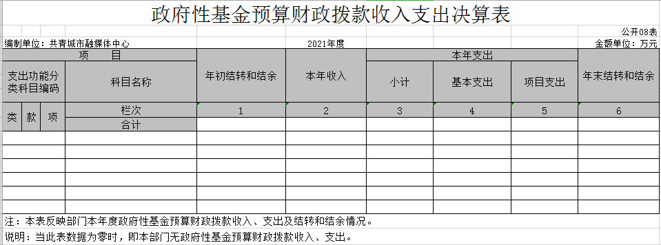 八、政府性基金预算财政拨款收入支出决算表