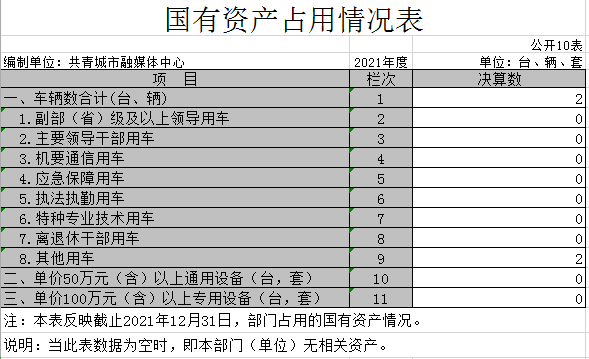 截至2021年12月31日,本部门(单位)国有资产占用情况见公开10表《国有资产占用情况表》。其中车辆中的其他用车主要是:日常新闻采访车辆。