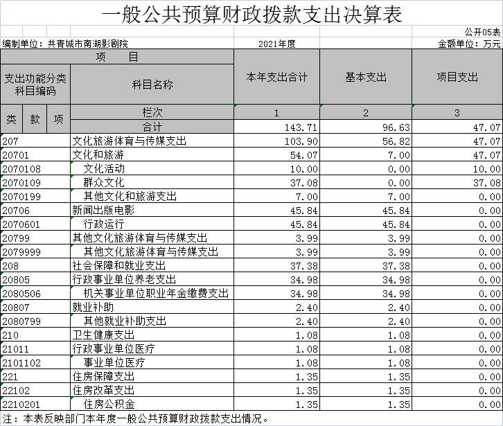 本部门2021年度支出总计147.76万元,其中本年支出合计 万元,较2020年减少127.87万元,下降46.39%,主要原因是:南湖影剧院单位合并入共青城市职工服务中心;年末结转和结余 0万元,较2020年减少5.35万元,下降100%,主要原因是:无年末结转结余。