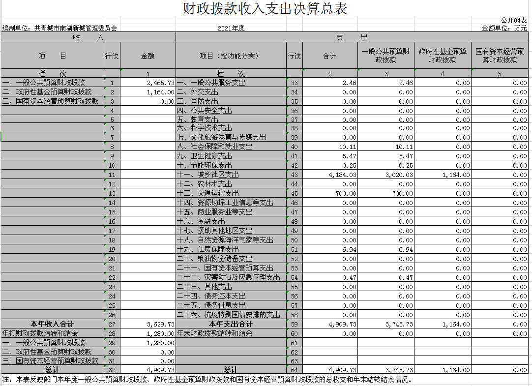 四、财政拨款收入支出决算总表