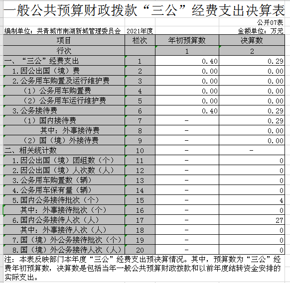 (一)“三公”经费支出:指用一般公共预算财政拨款安排的因公出国(境)费、公务用车购置及运行维护费和公务接待费。其中,因公出国(境)费反映单位公务出国(境)的国际旅费、国外城市间交通费、住宿费、伙食费、培训费、公杂费等支出;公务用车购置及运行维护费反映单位公务用车车辆购置支出(含车辆购置税、牌照费),按规定保留的公务用车燃料费、维修费、过桥过路费、保险费、安全奖励费用等支出;公务接待费反映单位按规定开支的各类公务接待(含外宾接待)支出。