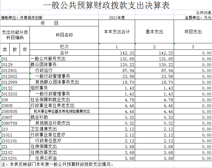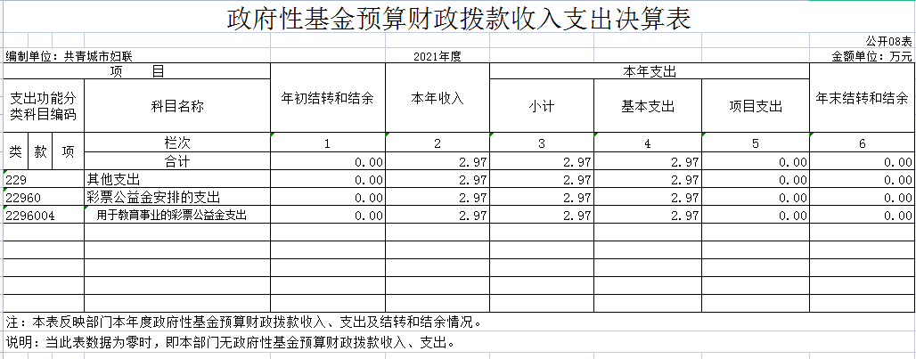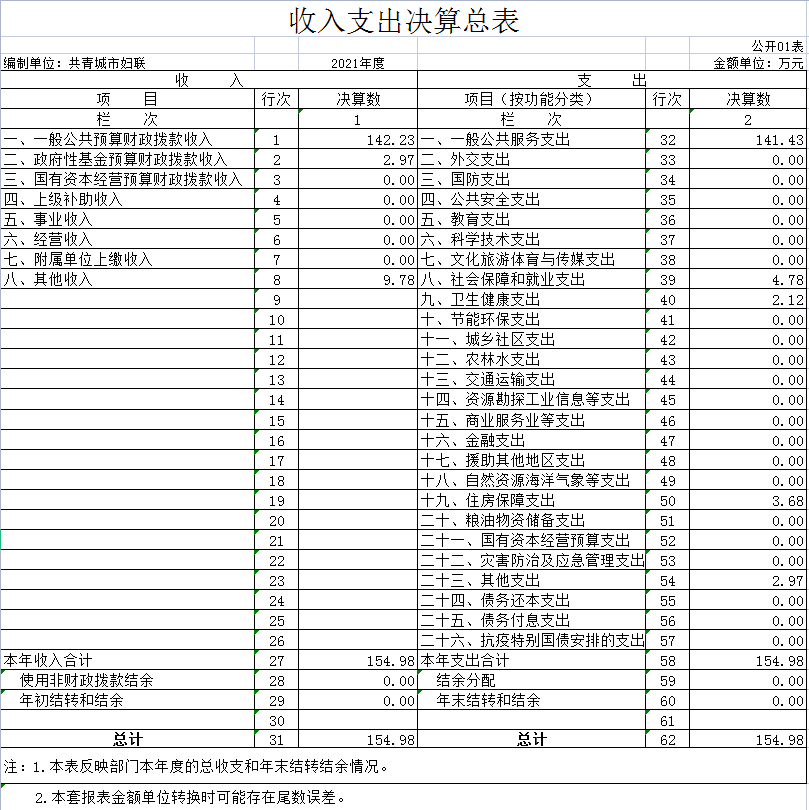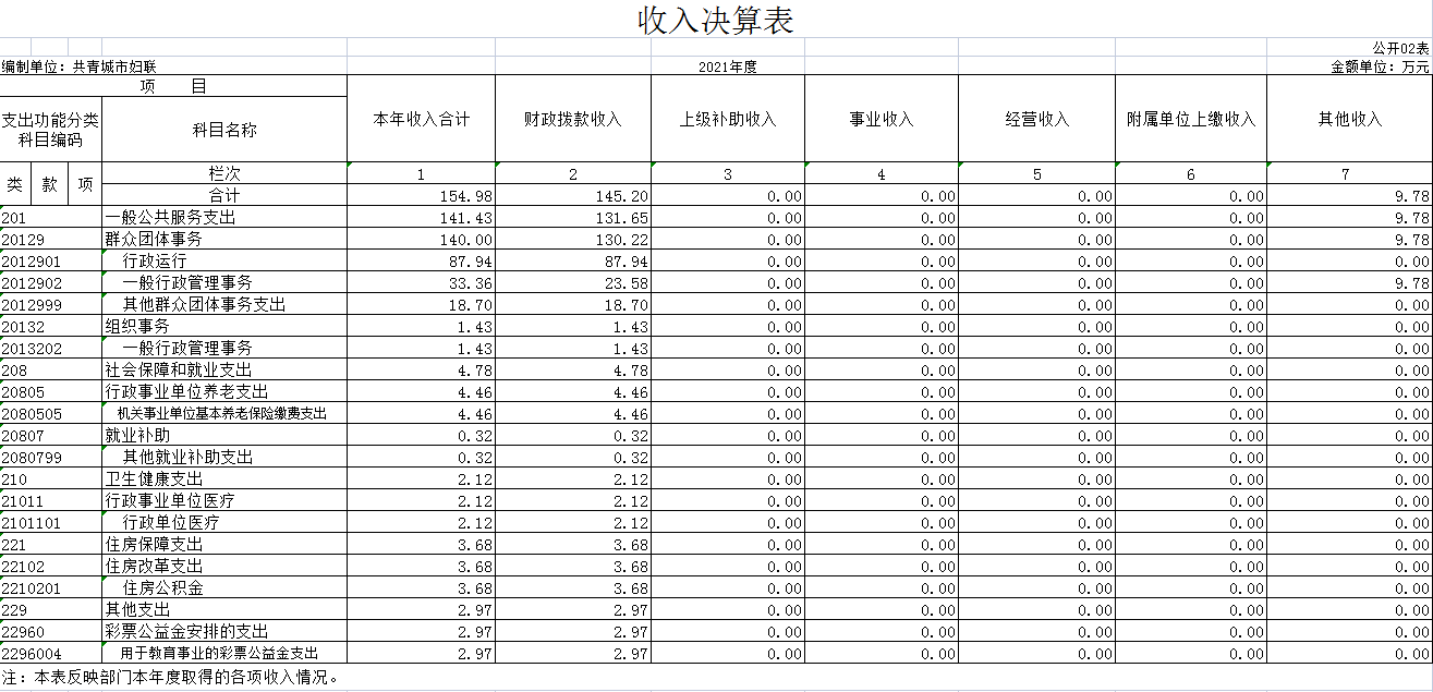 纳入本套部门决算汇编范围的单位共1个,包括:共青城市妇女联合会本级和0个所属二级预算单位。