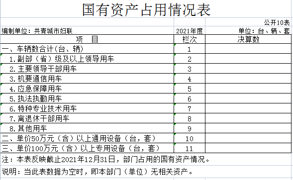 备注:共青城市妇联未配置公车,不存在国有资产占用情况